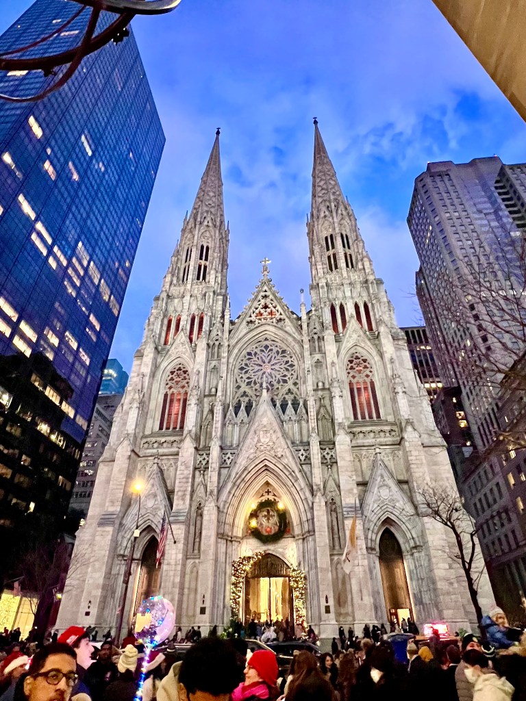And so, this weekend I convinced my hubby to make the yearly *pilgrimage* 20 miles down the road to Manhattan. Our day consisted of a few stops along 5th Avenue including the Rockefeller Center, St. Patrick’s Cathedral, the Saks window displays and more!