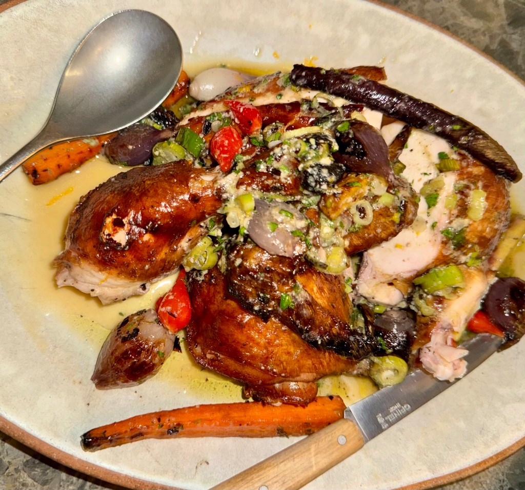 LARGE FORMAT: We watched a few YouTube videos before the reservation and from those videos, we knew right away we were going to try both the Half Chicken Green Onion Salsa, Pearl Onions, Rainbow Carrots and the Lamb Laffa, Tahini, Amba, Shifka. Again, both dishes blew our socks off.